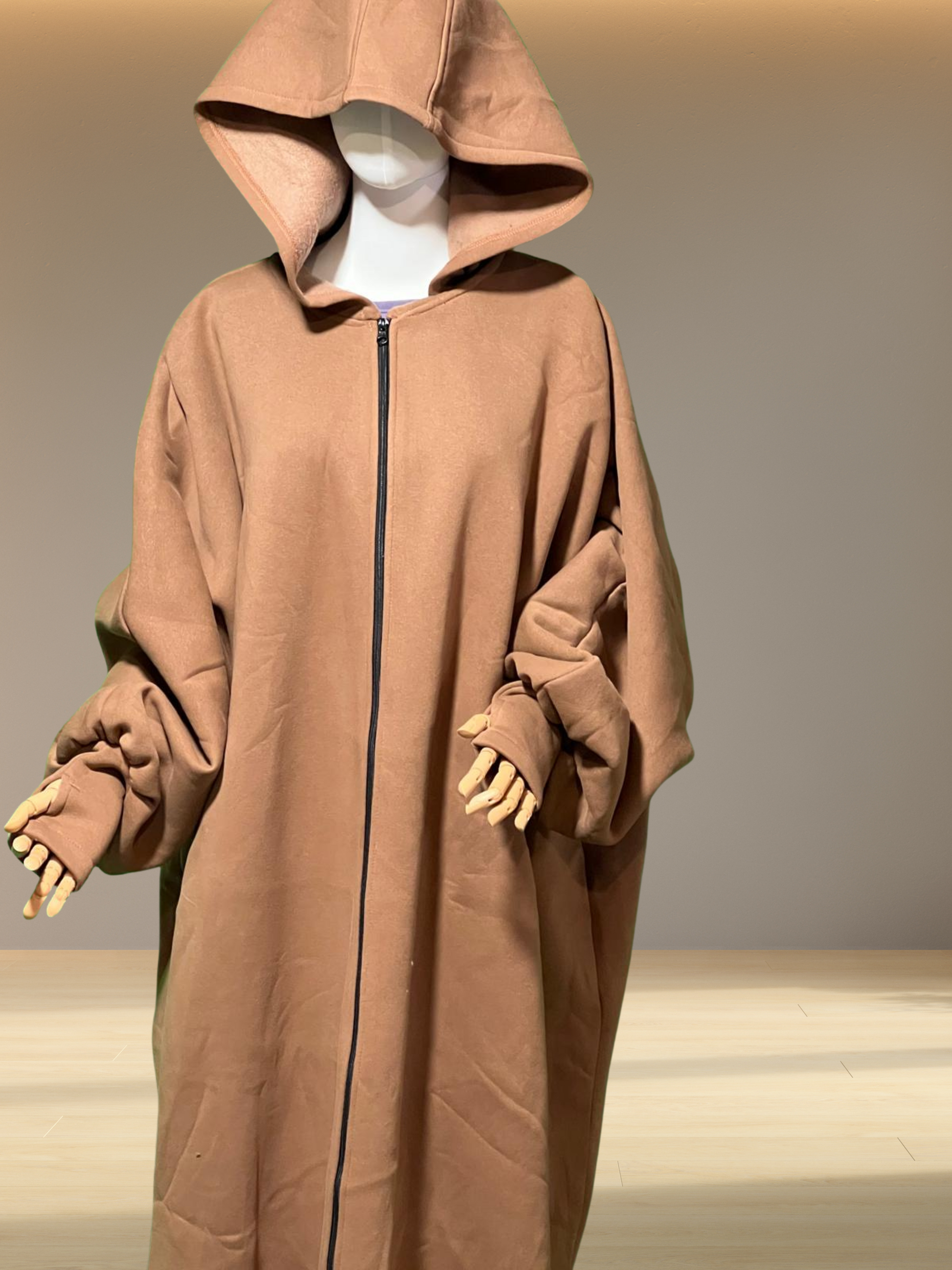 Stay cozy and covered with this loose butterfly-cut long coat, made from soft fleece for maximum warmth and comfort. Designed with a wide, flowing silhouette, it offers modest coverage without compromising on ease of movement.